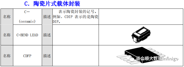 表示陶瓷封装的记号。例如,CDIP表示的是陶瓷DIP,是在实际中经常使用的记号。