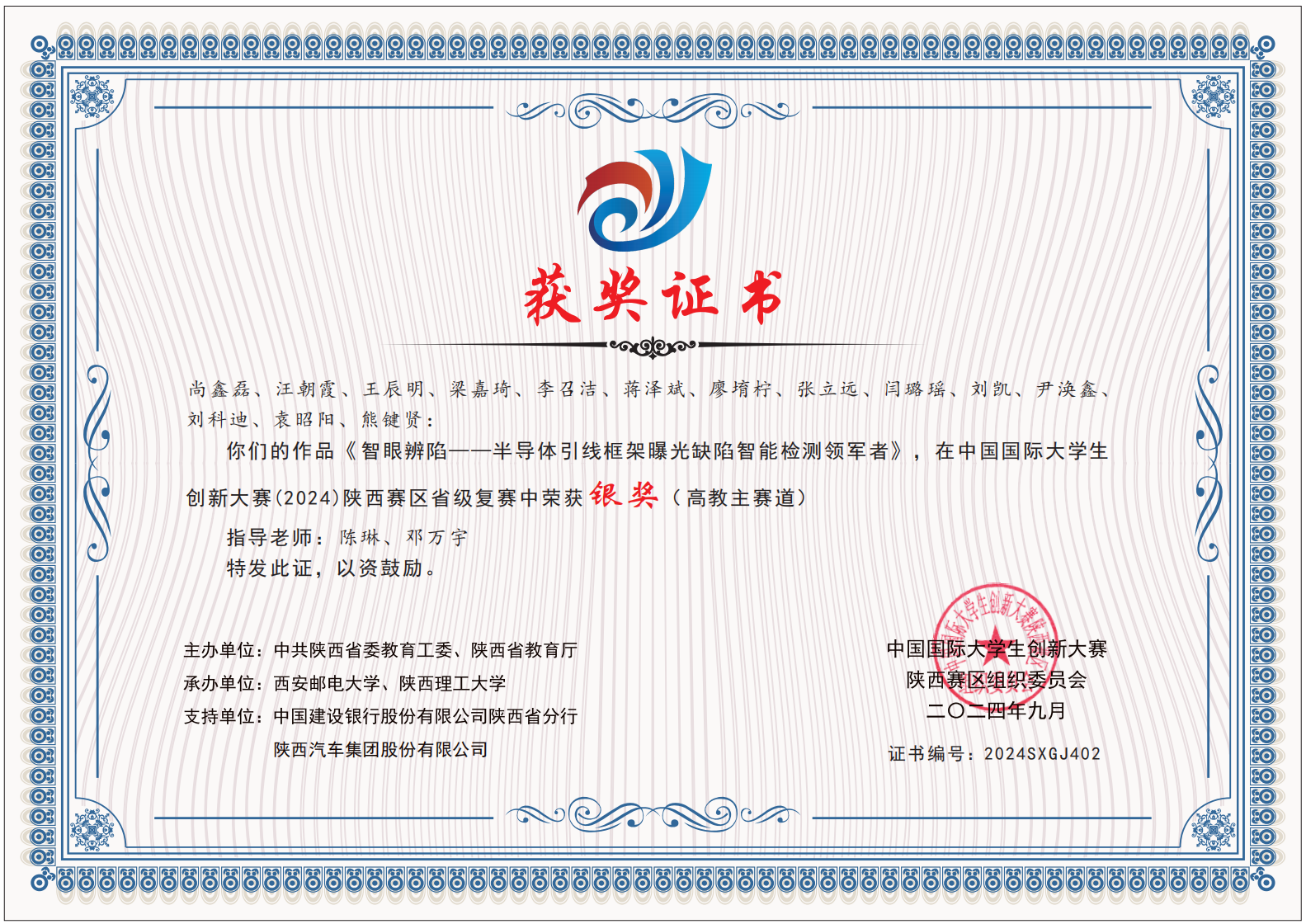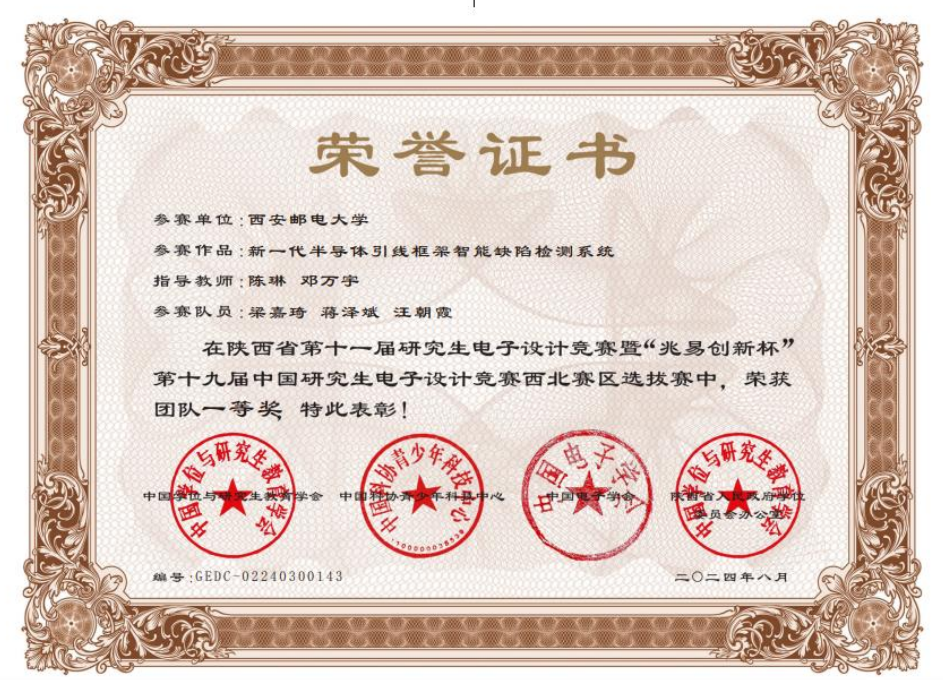 获得者:邓万宇,熊键贤,王辰明、尚鑫磊、蒋泽斌、李召洁、汪朝霞、梁嘉琦